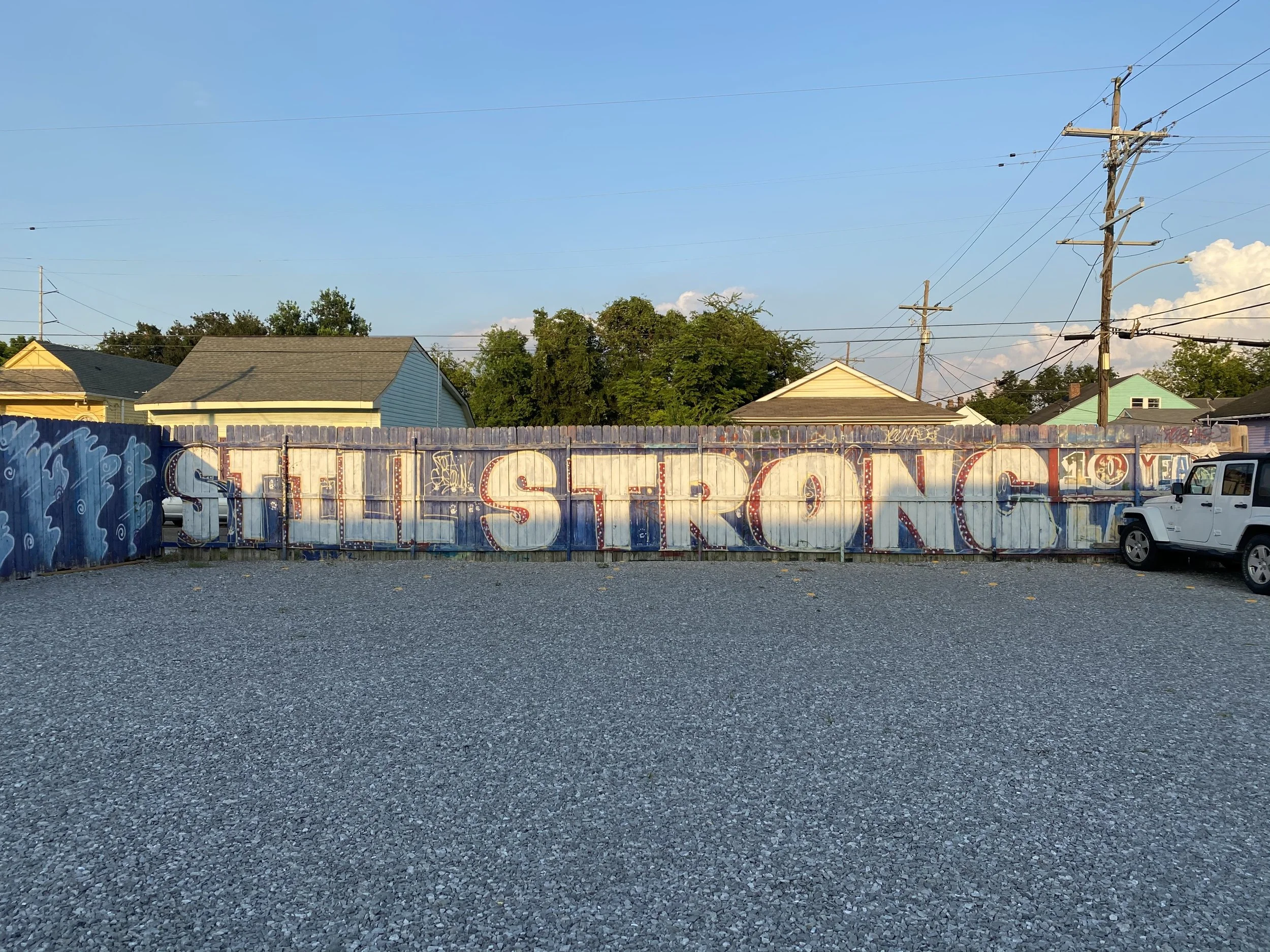 #MURAL: Baptized When The Levees Broke was created by Brandon 'B. Mike' Odums to commemorate the 10th anniversary of Hurricane Katrina along with a “STILL STRONG” mural. The lot is located in a rapidly gentrifying neighborhood and is currently used as a car lot..